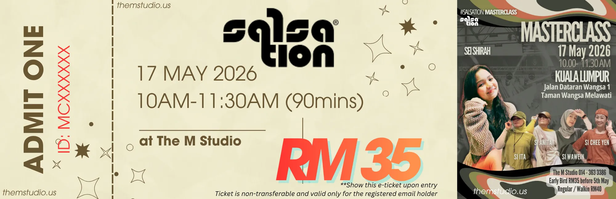 at The M Studio which starts from 10.00am - 11:30am (90 min)